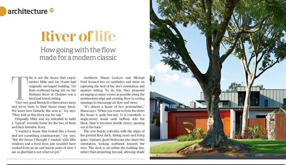 Great to see Brisbane News (10-16th August 2016) article, `River of Life’ featuring architecturally designed house by Shaun Lockyer Architects. SEED Landscape Design is proud of the contribution on the landscape design to make this property on the Brisbane River in Chelmer truly shine! You can check out more images of `Chelmer River House' in our projects folder.