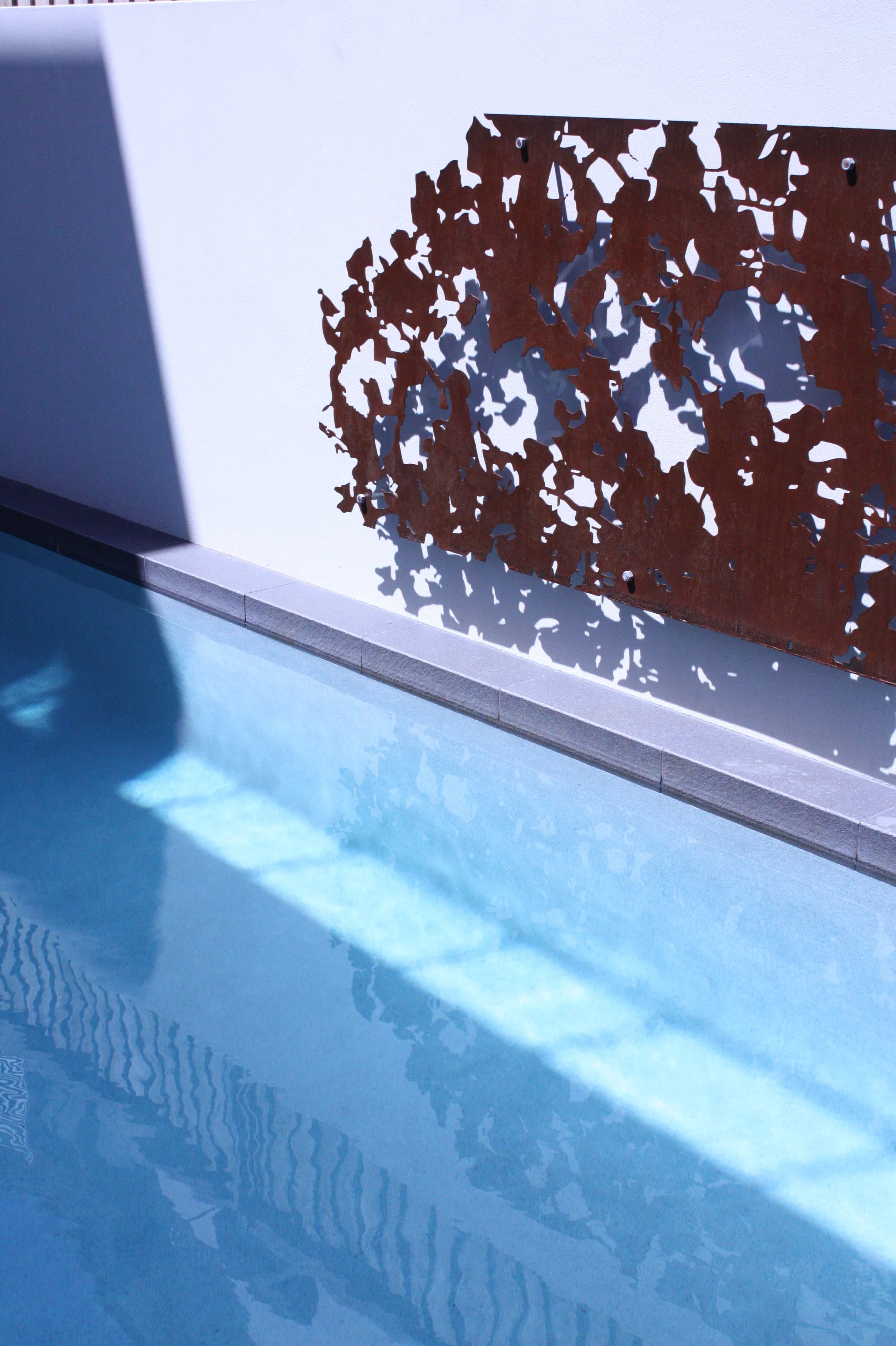 The corten steel screens were repeated around the pool border to great effect.