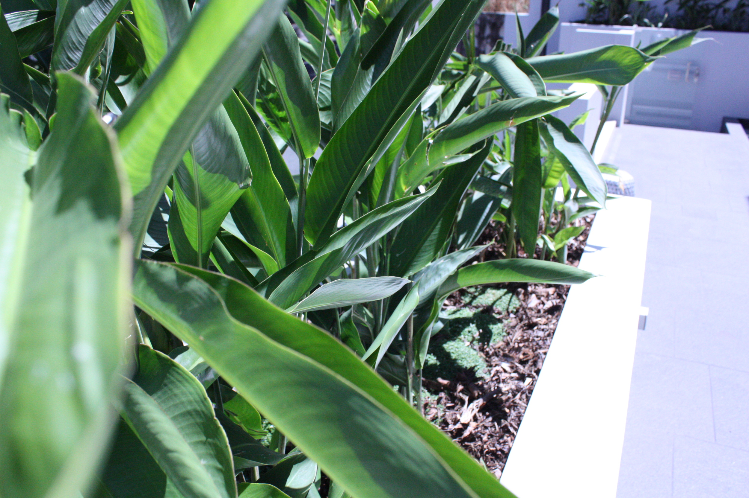 We created lush screen planting in planters in shaded areas and around the pool.